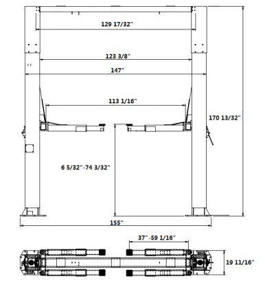 - Symmetrical Arm Assembly: Straight 2-stage front and rear arms (37″ to 59 1/16″ reach).