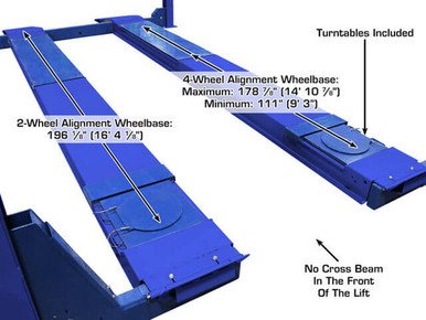 | Clearance Between Columns | Rear: 116 3/8″ (9′ 8 3/8″) Front: 117 3/8″ (9′ 9 3/8″) |