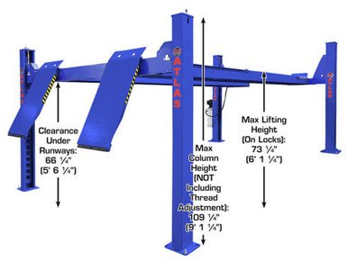 | Column Height (without threaded shaft) | Rear: 90 1/2″ (7′ 6 1/2″) Front: 109 1/4″ (9′ 1 1/4″) |