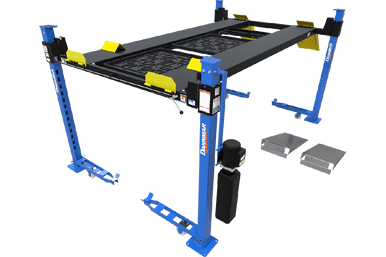 Dannmar’s D4-9 four-post lift is a robust and high-quality solution featuring welded-steel construction, a long-lasting proven design, and a strong commitment to quality, safety, and value. The D4-9 is built with the strength to lift very heavy vehicles up to 9,000 lbs. (4,082 kg) and boasts quick lifting speeds.
