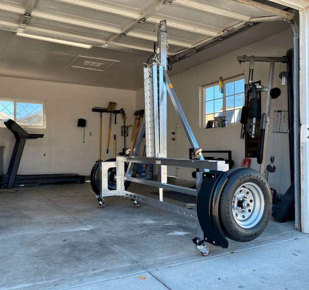 Designed to tow any vehicle with a max weight of 5000 pounds. Stores Vertically in any average size garage. Optional “Patented” Caster wheels are available providing easy movement while Standing Up Right. All stand up tow dollies we offer come with a set of wheel straps and safety deck chains.  Our straps come with double G70 Hooks and will accommodate a tire size of up to 26″ inches Tall 8″ wide Tire. Weighing in at only 330 lbs the stand up is one of the lightest car dollies in the market. We use 2″ x 2″ square sway-support bars which provide smooth balance traveling compared with other companies which use Angle Iron.