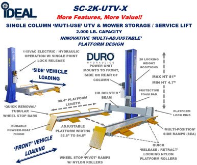 iDEAL Single Column UTV & Mower Storage/ Service Lift