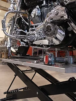 We know you like to get close and personal with your bikes, get them running and looking good. We do too, so our motorcycle lifts feature narrow-rail construction so you can get up close to your bike to perform any maintenance work and/or cleaning without having to worry about the lift and bike tipping over as soon as you touch anything. Kendon’s Bike Lifts have a large footprint similar to industrial size motorcycle lifts that provides a stable working environment. No need to worry about bumping into the lift and having it tip over with your bike on top.