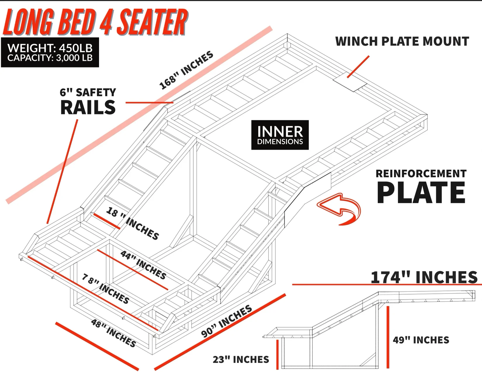 - Free 6″ inch safety side rails for all racks, valued at $300, to prevent you from driving off the rack
